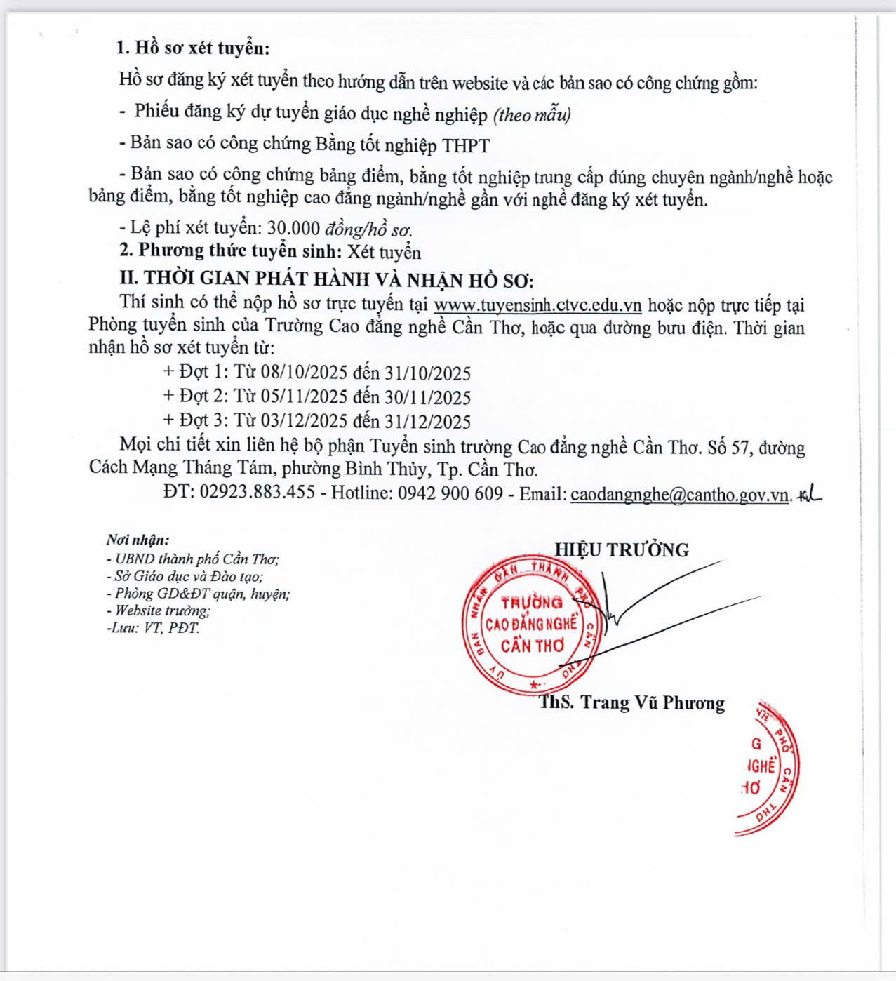 Tuyển sinh trình độ Cao đẳng, Trung cấp hệ chính quy